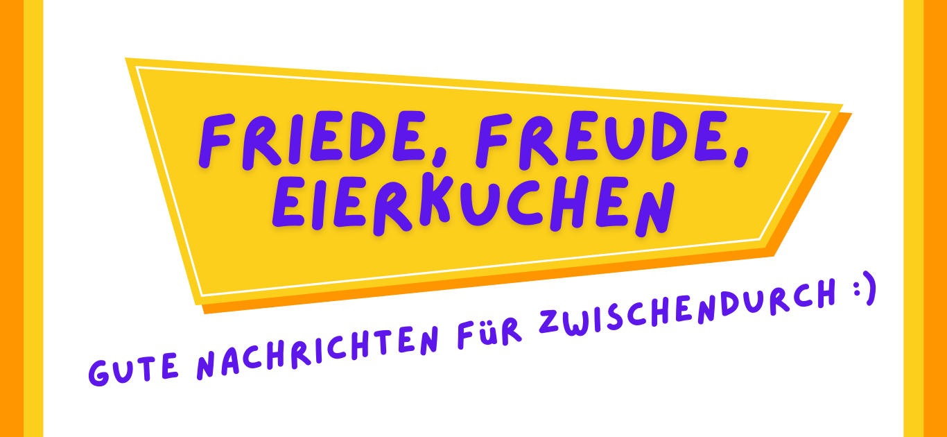 Manchmal wird es einem einfach zu viel, wenn man die aktuellen Nachrichten verfolgt. Lest hier nun ein paar gute Nachrichten, damit ihr zwischendurch auch einmal etwas Abwechslung habt :)