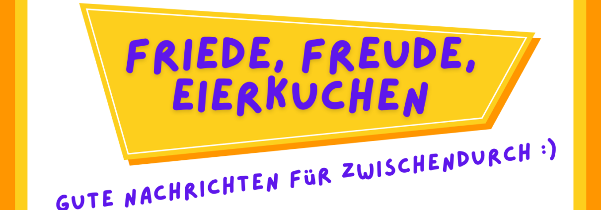 Ihr seht also: Da draußen gibt es auch gute und hoffnungsvolle Nachrichten. Es ist wichtig, das aktuelle Geschehen immer im Blick zu halten, aber vielleicht braucht auch ihr einmal ein paar gute Nachrichten zwischendurch… einfach für’s Gemüt ;)